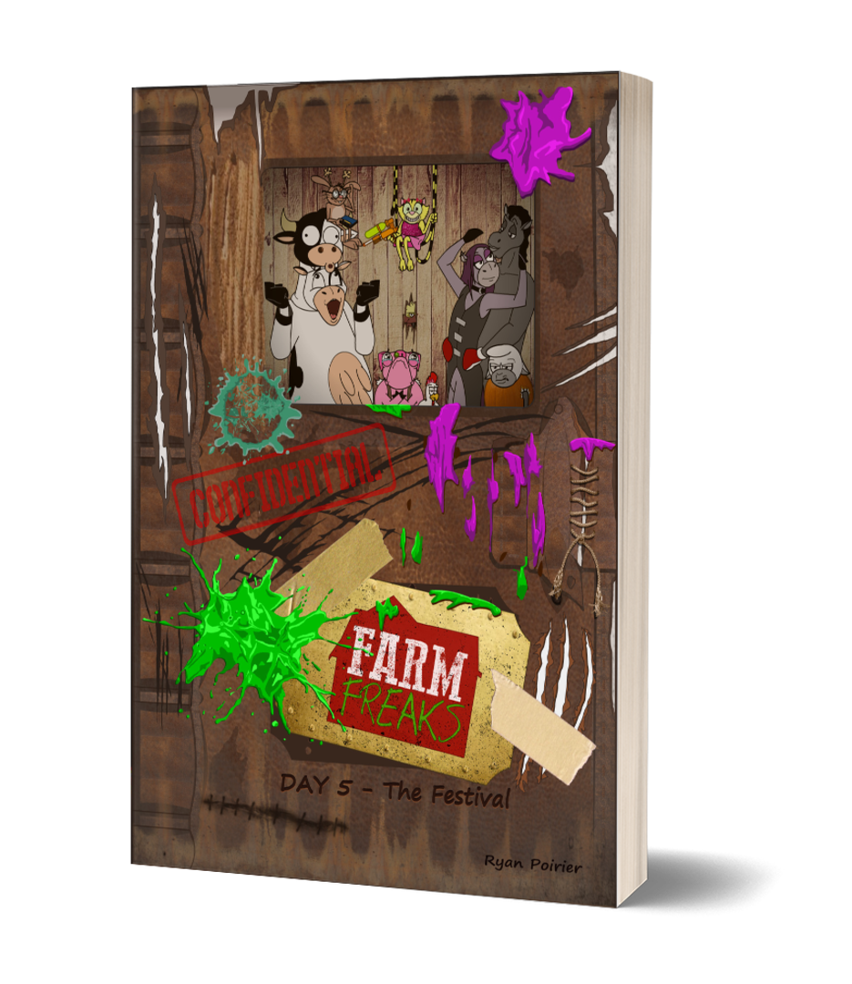 Designed with a cartoonish flair, "Farm Freaks" is a delightful blend of simplicity and satire, making it an accessible read for children while offering a sharp-witted edge for adult readers. Each installment's cover grows increasingly tattered, mirroring the escalating chaos within the story, adding a tactile dimension to the reader's journey.